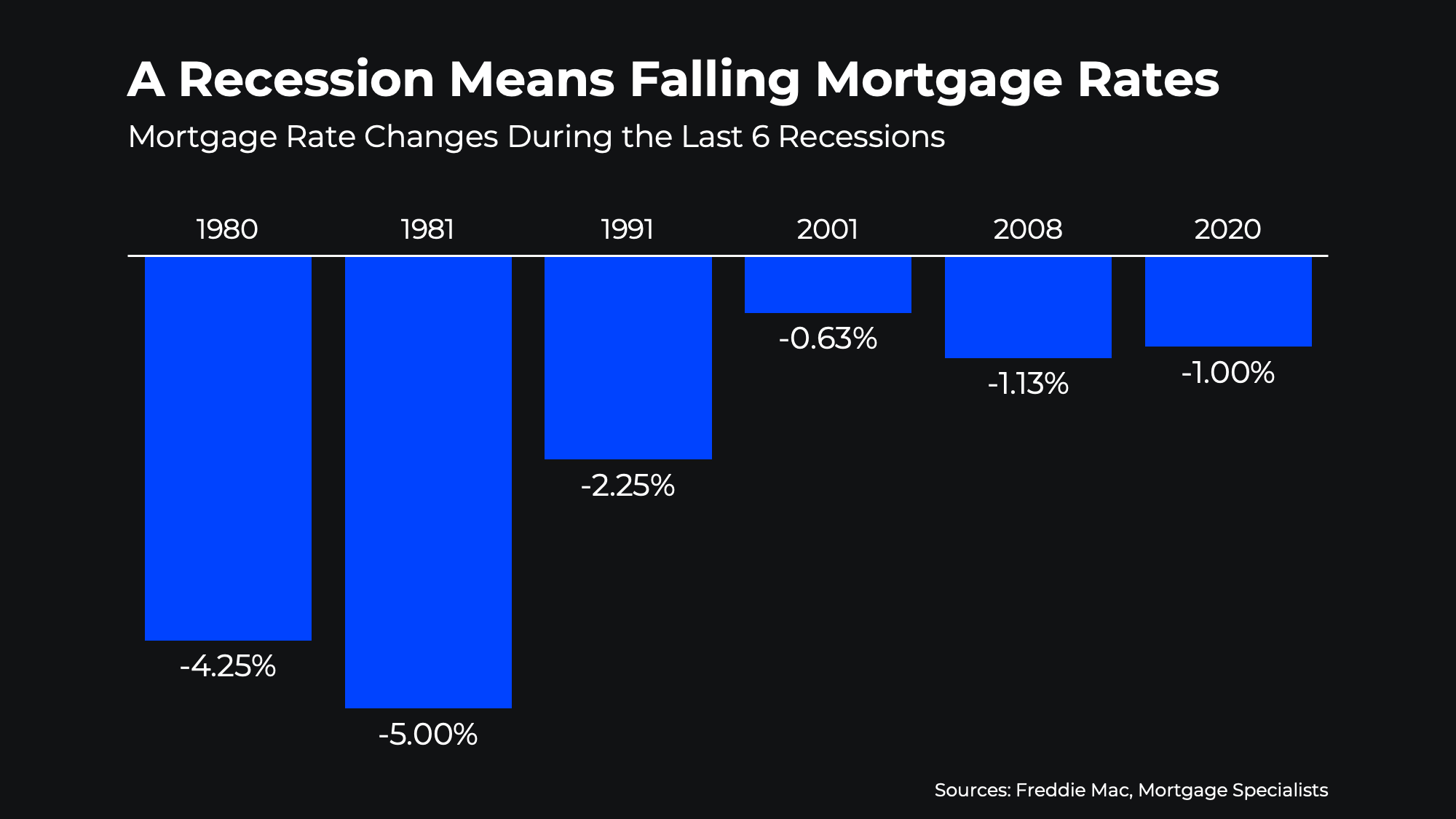Looking at the data for the last six recessions, mortgage rates came down each time — helping boost buyer purchasing power, even during tougher economic periods (see graph below):